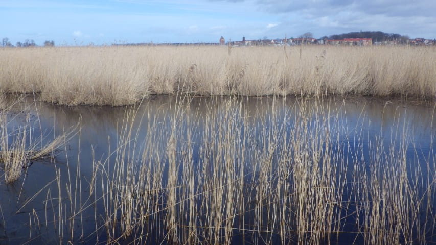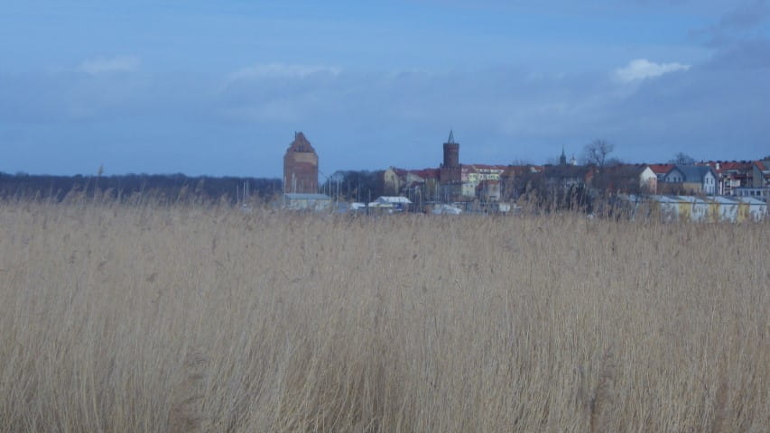 Mam jednak sugestię alternatywnego powrotu, która nieznacznie wydłuży naszą wędrówkę. Po skręceniu w kierunku Kamienia Pomorskiego, po chwili mamy rozwidlenie dróg. Skręcamy w lewo i drogą utwardzoną docieramy do wału przecipowodziowego. Przechodzimy obok stacji pomp, mijając ją prawą stroną wału i kierujemy się nim na południe. Poruszamy się dobrą, droga szutrową. Ta część trasy alternatywnej jest najpiękniejsza na wyspie, ze względu na widok na Zalew Kamieński, jak i samo miasto Kamień Pomorski. Nawierzchnia wału jest wyłączona z ruchu kołowego !. Trasa alternatywnego powrotu nie jest oznakowana znakami szlaków turystycznych, co może zmieni się po ustaleniach z Zachodniopomorskim Urzędem Melioracji i Urządzeń Wodnych w kolejnych latach.