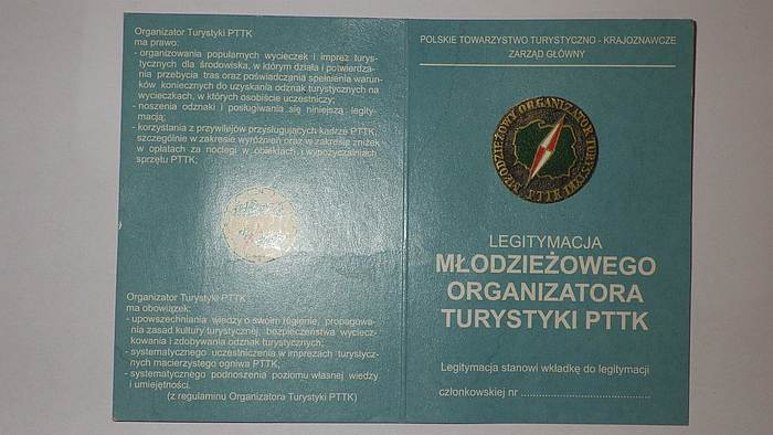 LEGITYMACJA MŁODZIEŻOWEGO ORGANIZATORA TURYSTYKI PTTK