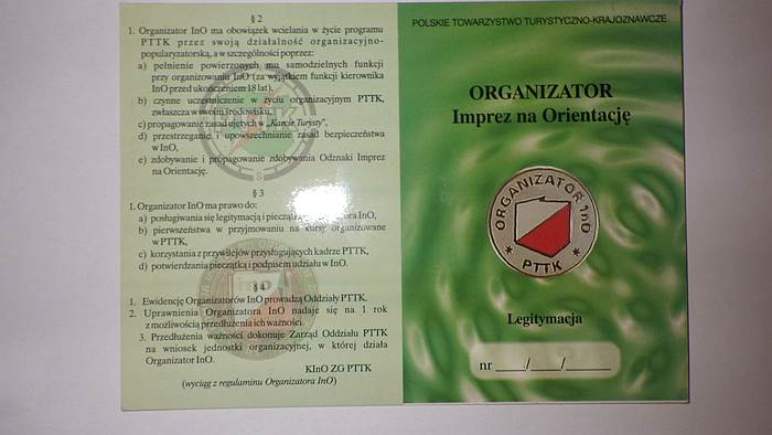LEGITYMACJA ORGANIZATORA IMPREZ NA ORIENTACJĘ PTTK - KOLOR