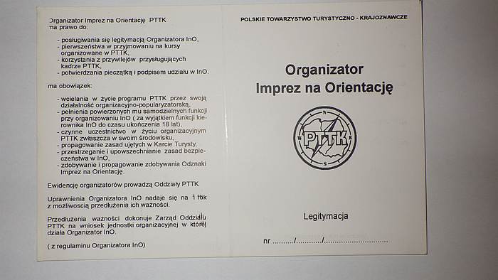 LEGITYMACJA ORGANIZATORA IMPREZ NA ORIENTACJĘ PTTK