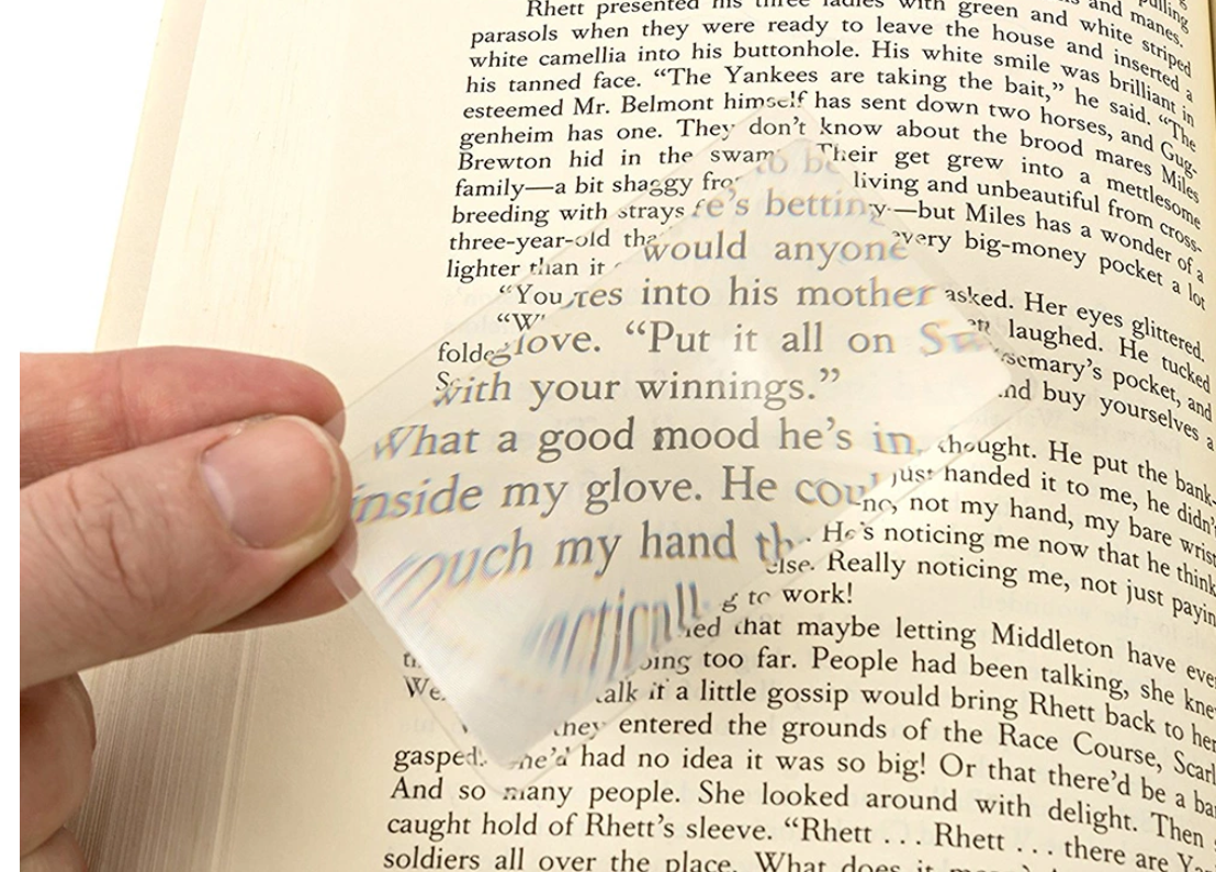 Kieszonkowa plastikowa lupa do czytania wykorzystująca zasadę działania tzw. soczewki Fresnela. Mieści się w portfelu w miejscu karty kredytowej. Wykonana została z giętkiego wysoko przeźroczystego tworzywa sztucznego. Sprawdza się nie tylko przy czytaniu, ale również w pracy lub w eksperymentach ze światłem i obrazem.